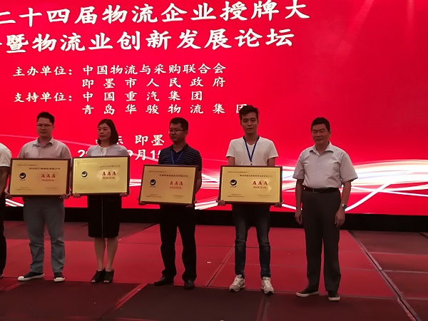 9月15日,“物流企業(yè)授牌大會(huì)暨物流業(yè)創(chuàng)新發(fā)展論壇”在山東省即墨市隆重召開(kāi),參加本次大會(huì)的有來(lái)自全國(guó)獲得A級(jí)物流企業(yè)資質(zhì)、擔(dān)保存貨管理及質(zhì)押監(jiān)管企業(yè)資質(zhì)和星級(jí)冷鏈物流企業(yè)資質(zhì)的近400家物流企業(yè)代表,40多家地方物流行業(yè)協(xié)會(huì)代表、即墨市各政府機(jī)關(guān)代表以及其他地方物流主管部門負(fù)責(zé)人合計(jì)600余人出席了大會(huì)。