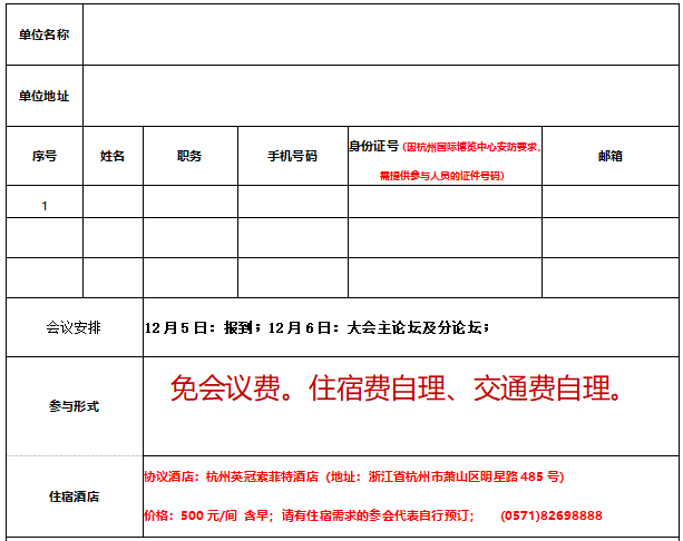 報(bào)到地點(diǎn):浙江省/杭州市/杭州英冠索菲特酒店會(huì)議地點(diǎn):浙江省/杭州市/杭州國(guó)際博覽中心