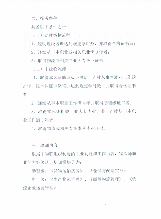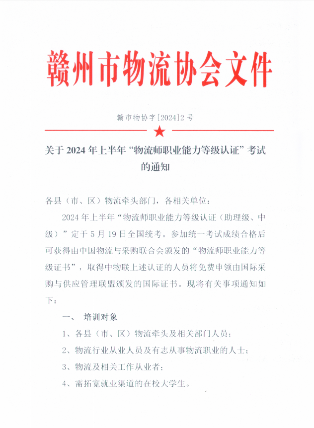 關(guān)于2024年上半年“物流師職業(yè)能力等級(jí)認(rèn)證”考試的通知