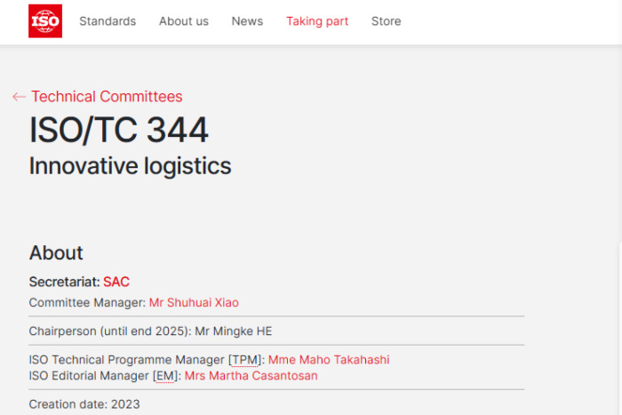 由中物聯(lián)提交的ISO/TC(物流標準化技術(shù)委員會)提案申請,在市場監(jiān)管總局標準創(chuàng)新司的組織與指導下,經(jīng)過近三年的努力,于2023年6月由ISO正式批準成立(ISO第47/2023號決議),這是由中國承擔的首個物流領(lǐng)域的國際標準化技術(shù)委員會,代表著我國在物流領(lǐng)域國際標準化方面取得了重大突破。