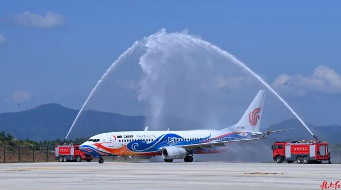 9月28日,從北京大興國(guó)際機(jī)場(chǎng)起飛的CA8697航班和從上海浦東國(guó)際機(jī)場(chǎng)起飛的MU6285航班,分別于10時(shí)03分和16時(shí)02分平穩(wěn)降落在贛州瑞金機(jī)場(chǎng),并緩緩穿過象征民航最高禮儀的“水門”,標(biāo)志著贛州瑞金機(jī)場(chǎng)正式通航,贛州由此邁入“雙機(jī)場(chǎng)”時(shí)代。