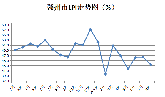 贛州市物流協(xié)會(huì)發(fā)布的2025年8月份贛州市物流業(yè)景氣指數(shù)為43.3%。