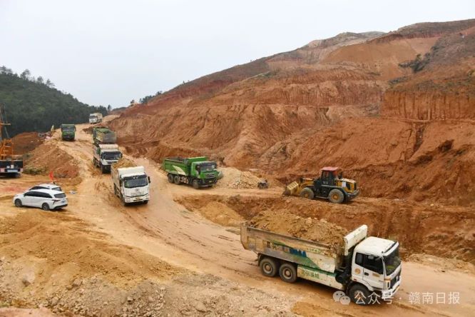 日前在定南縣通用機場項目建設現(xiàn)場近百輛機械車輛穿梭往來項目施工方抓住施工黃金時期全力以赴推進項目建設