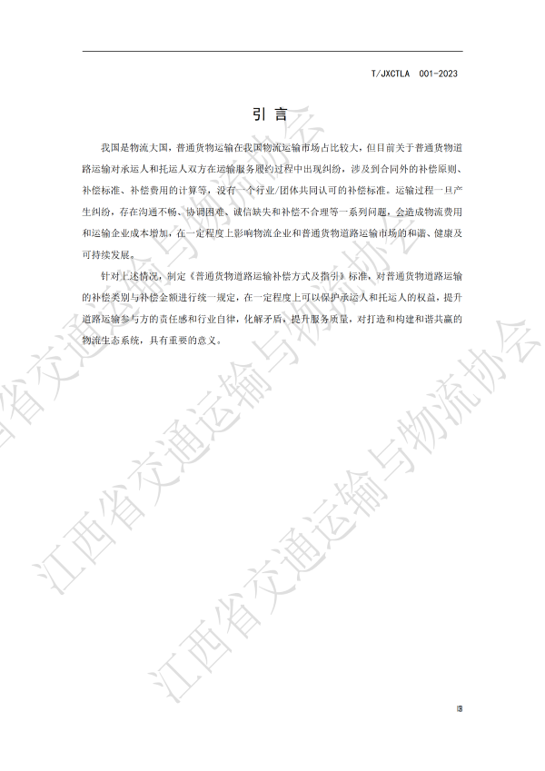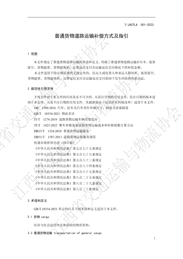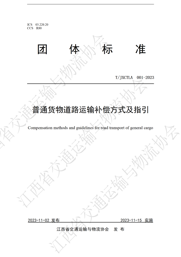 江西省團(tuán)體標(biāo)準(zhǔn)《普通貨物道路運(yùn)輸補(bǔ)償方式及指引》正式實(shí)施