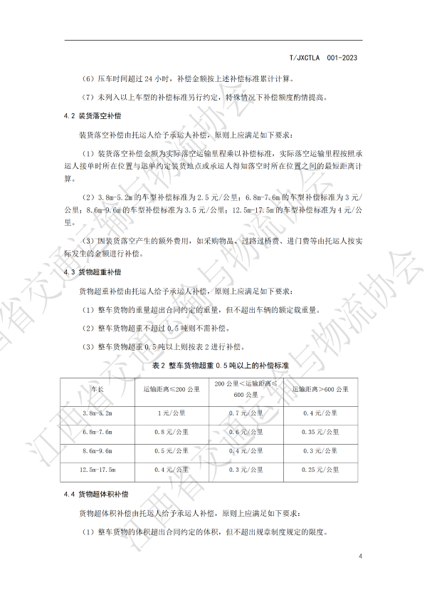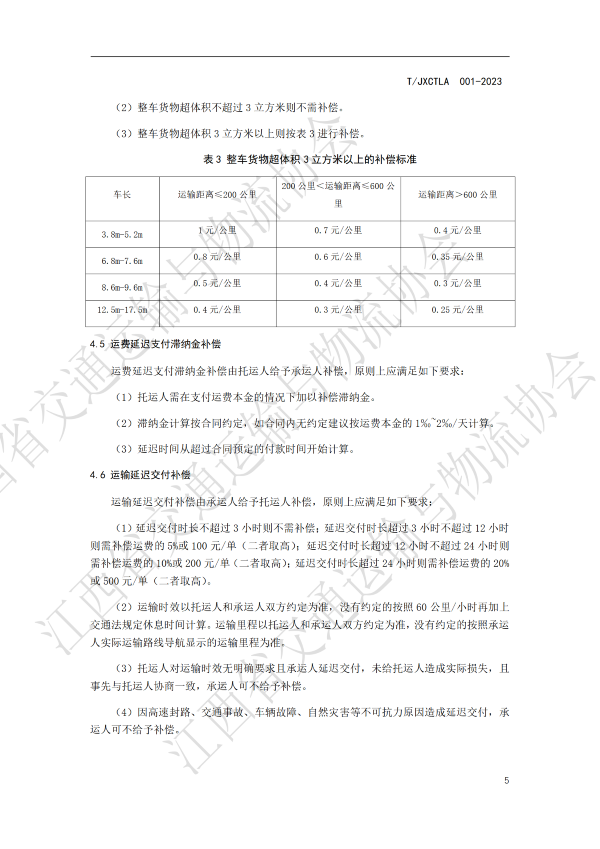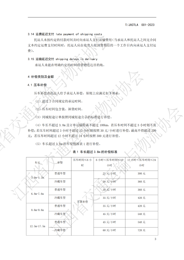 根據(jù)國家《團(tuán)體標(biāo)準(zhǔn)管理規(guī)定》和《江西省交通運(yùn)輸與物流協(xié)會(huì)團(tuán)體標(biāo)準(zhǔn)制修訂管理辦法》的有關(guān)規(guī)定,由江西省交通運(yùn)輸與物流協(xié)會(huì)與華東交通大學(xué)交通運(yùn)輸工程學(xué)院共同編制完成的《普通貨物道路運(yùn)輸補(bǔ)償方式及指引》(T/JXCTLA001-2023)團(tuán)體標(biāo)準(zhǔn),已于2023年11月2日在全國團(tuán)體標(biāo)準(zhǔn)信息平臺(tái)(https://www.ttbz.org.cn)發(fā)布,并在2023年11月15日正式實(shí)施。該標(biāo)準(zhǔn)適用于除法律法規(guī)明文規(guī)定外的托運(yùn)人、收貨人和承運(yùn)人,因壓車、裝貨落空、貨物超重、貨物超體積、運(yùn)費(fèi)延遲支付及運(yùn)輸延遲交付原因下發(fā)生糾紛的補(bǔ)償辦法,對(duì)普通貨物道路運(yùn)輸?shù)难a(bǔ)償類別與補(bǔ)償金額制定了明確的標(biāo)準(zhǔn)。該標(biāo)準(zhǔn)的實(shí)施,可以保護(hù)承運(yùn)人和托運(yùn)人的權(quán)益,提升道路運(yùn)輸參與各方的責(zé)任感和行業(yè)自律,化解彼此矛盾,提升服務(wù)質(zhì)量,對(duì)打造和構(gòu)建和諧共贏的物流生態(tài)系統(tǒng),具有重要的意義。