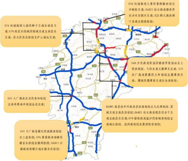 南昌市(G316)南昌縣梁家渡大橋東橋頭至橫崗京九鐵路下穿通道、南昌市(G320)新建區(qū)江西森林消防總隊(duì)到西山鎮(zhèn)路段、南昌市(G353)進(jìn)賢縣三陽大橋至塘南鎮(zhèn)麻丘小橋處、南昌市(S105)新建區(qū)石崗鎮(zhèn)保衛(wèi)村到石崗街路段、南昌市(S216)新建區(qū)厚田鄉(xiāng)山水村到象譚村路段、南昌市(S419)南昌縣向塘鎮(zhèn)強(qiáng)軍路(K38+457至K40+402)、南昌市(S104)進(jìn)賢縣南臺鄉(xiāng)段與鐘陵段、南昌市(S211)進(jìn)賢縣三里鄉(xiāng)、梅莊鎮(zhèn)、二塘鄉(xiāng)、鐘陵鄉(xiāng)(K31+538至K62+671)、南昌市(S417)新建區(qū)灣里新經(jīng)濟(jì)產(chǎn)業(yè)園到梅嶺王家段,贛州市(G105)南康區(qū)龍回鎮(zhèn)、信豐縣西牛鎮(zhèn)鋪前村、龍南市臨塘二橋、清潭逕一橋,贛州市(G206)石城縣小松鎮(zhèn)至琴江鎮(zhèn)、石城縣屏山鎮(zhèn)長江村,贛州市(G236)寧都縣肖田鄉(xiāng)橫坑村、贛州市(G238)興國縣崇賢鄉(xiāng)、安遠(yuǎn)縣(K471+526至K556+495),贛州市(G323)南康區(qū)蓉江街辦橋口村至青云村、贛縣區(qū)茅店鎮(zhèn)、章貢區(qū)沙河鎮(zhèn)處、大余縣新城鎮(zhèn)段,贛州市(G356)寧都縣固村鎮(zhèn)格口村,贛州市(G357)安遠(yuǎn)縣段、南康區(qū)龍華鎮(zhèn)丹材村,贛州市(G358)安遠(yuǎn)縣三百山虎崗村、三百山鎮(zhèn),贛州市(S217)會昌縣白鵝鄉(xiāng)梓坑村至君小鎮(zhèn)、贛州市(S226)安遠(yuǎn)縣(K174+384至K193+744)、贛州市(S226)贛縣區(qū)王母渡鎮(zhèn)段、贛州瑞金市(S451)云石山鄉(xiāng)至丁陂鄉(xiāng)、贛州市(S453)安遠(yuǎn)縣利村至龍布段、贛州市(S448)寧都縣長勝鎮(zhèn)新圩村、贛州市(S457)定南縣鵝公鎮(zhèn)段,宜春市(S519)奉新縣澡溪鄉(xiāng)黃石村段、西塔鄉(xiāng)西塔橋,上饒市(S202)玉山縣紫湖鎮(zhèn)楓葉村,萍鄉(xiāng)市(G319)上栗縣楊岐鄉(xiāng)桃文村段、蓮花縣探家坊、工業(yè)園至毛家橋、田東至奢下,萍鄉(xiāng)市(S311)湘東區(qū)湘東鎮(zhèn)、萍鄉(xiāng)市(S225)蘆溪縣南坑鎮(zhèn),新余市(S529)西山嶺至渣山村段,鷹潭市(G320)余江區(qū)黎家崗至唐山等路段因養(yǎng)護(hù)施工,單向通行,請出行車輛注意回避、繞行。